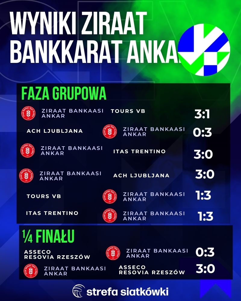 Ziraat Ankara jak burza przeszedł przez fazę grupowę. Wygrał wszystkie spotkania i stracił zaledwie trzy sety. Podopieczni Mustafy Kavaza zajęli 1. miejsce, a w ćwierćfinale zmierzyli się z Asseco Resovią. Polski zespół nie postawił tureckiej ekipie z Tomaszem Fornalem w składzie poprzeczki zbyt wysoko. Ziraat dwukrotnie triumfował 3:0.