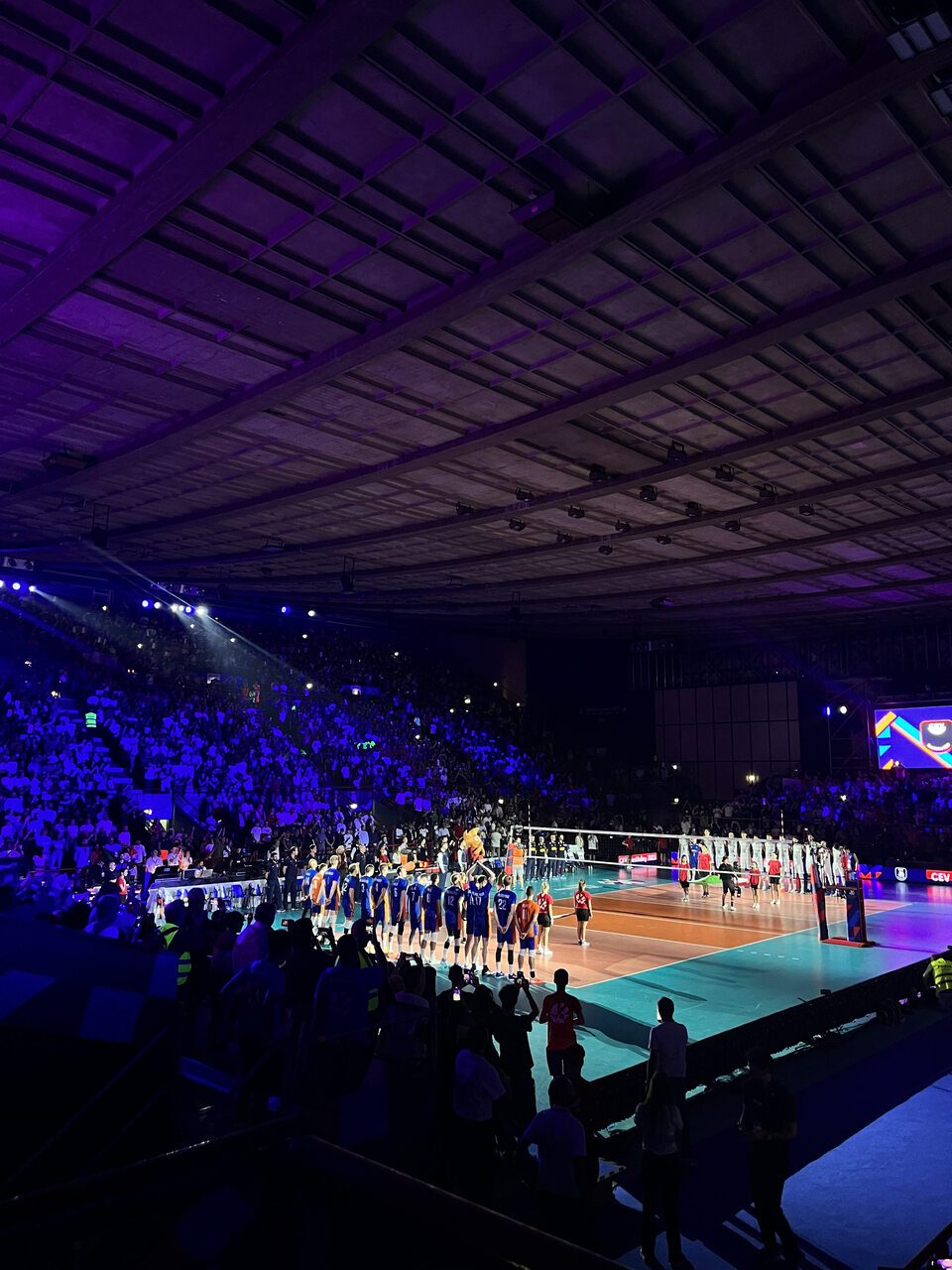 Włosi również niezbyt dobrze rozpoczęli swoje spotkanie ćwierćfinałowe, choć byli chyba jeszcze większymi faworytami niż my w meczu z Serbią. We znaki gospodarzom dał się przede wszystkim Nimir Abdel-Aziz. O wyniku tego starcia decydowała dopiero gra na przewagi. Przy naprawdę żywiołowym dopingu pełnej hali rownież i Italia zameldowała się w najlepszej czwórce mistrzostw Europy. Włoski hymn odśpiewany przez komplet publiczności robi ogromne wrażenie, a do tego świetnym pomysłem były bransoletki, które dostał każdy z kibiców. Te w odpowiednich momentach podświetlały się w kolory Italii – niebieski, czerwony i zielony. Wszystkie – jednocześnie. Włoscy kibice – do zobaczenia w Rzymie!